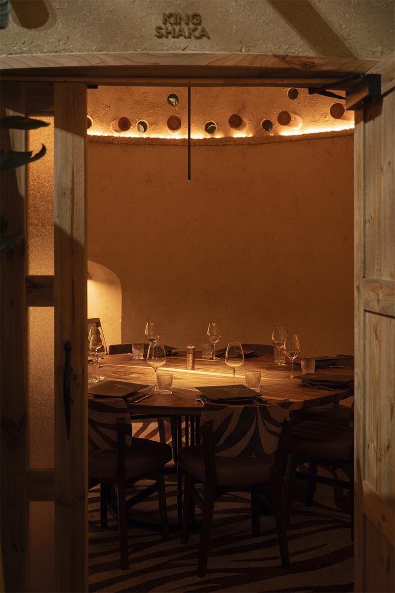 King Shaka is a private dining room ideal for groups of 8-10. The space measures 9 square metres, offering a comfortable setting for private bookings. Table setup includes a round table. Speakers are built into the space, with adjustable volume. Air conditioning is provided with personal control.
